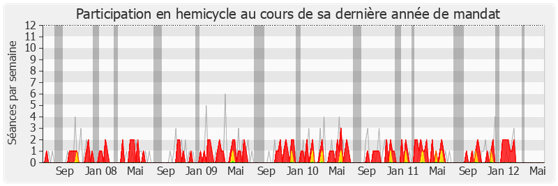Présences enregistrées     Participations     Mots prononcés (x 10 000)     Vacances parlementaires   Présence médiane