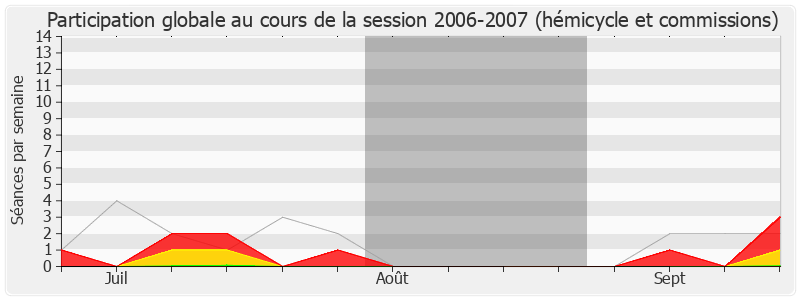 Présences enregistrées     Participations     Mots prononcés (x 10 000)     Vacances parlementaires   Présence médiane