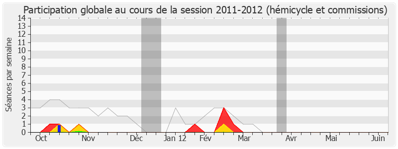 Présences enregistrées     Participations     Mots prononcés (x 10 000)     Vacances parlementaires   Présence médiane