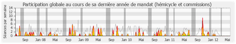 Présences relevées     Participations     Mots prononcés (x 10 000)     Vacances parlementaires   Présence médiane    Explications