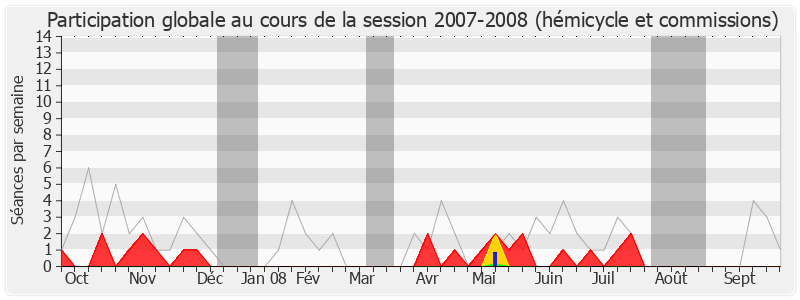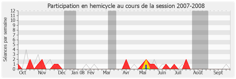 Présences enregistrées     Participations     Mots prononcés (x 10 000)     Vacances parlementaires   Présence médiane