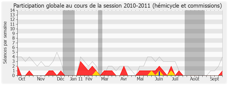 Présences enregistrées     Participations     Mots prononcés (x 10 000)     Vacances parlementaires   Présence médiane