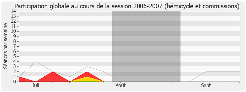 Présences enregistrées     Participations     Mots prononcés (x 10 000)     Vacances parlementaires   Présence médiane