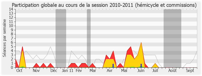 Présences enregistrées     Participations     Mots prononcés (x 10 000)     Vacances parlementaires   Présence médiane