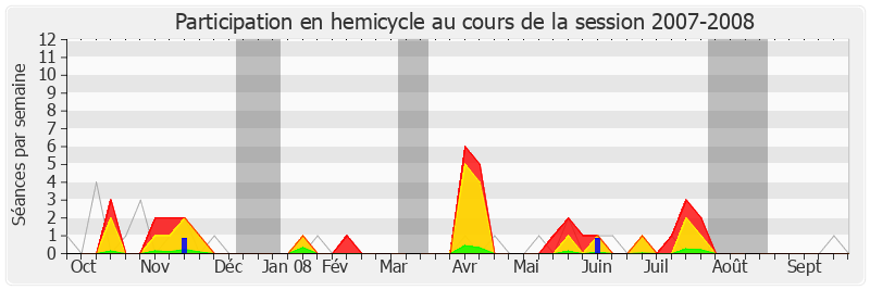 Présences enregistrées     Participations     Mots prononcés (x 10 000)     Vacances parlementaires   Présence médiane