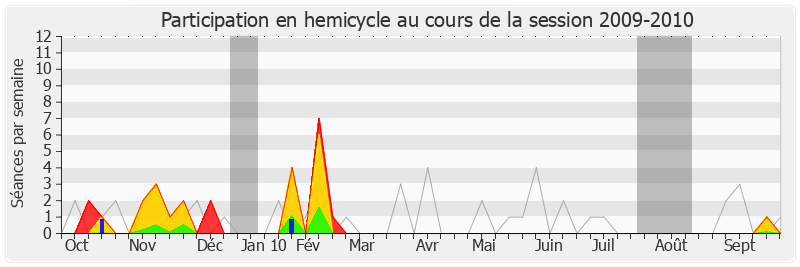 Présences enregistrées     Participations     Mots prononcés (x 10 000)     Vacances parlementaires   Présence médiane