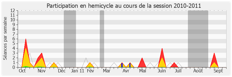 Présences enregistrées     Participations     Mots prononcés (x 10 000)     Vacances parlementaires   Présence médiane