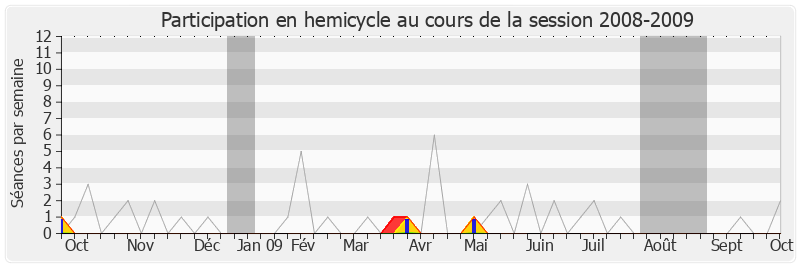 Présences enregistrées     Participations     Mots prononcés (x 10 000)     Vacances parlementaires   Présence médiane