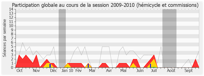 Présences enregistrées     Participations     Mots prononcés (x 10 000)     Vacances parlementaires   Présence médiane