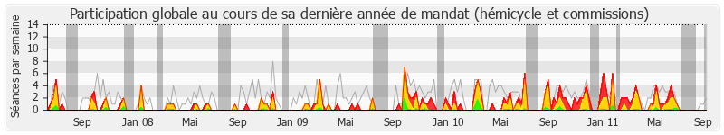Présences relevées Participations Mots prononcés (x 10 000) Vacances parlementaires — Présence médiane Explications