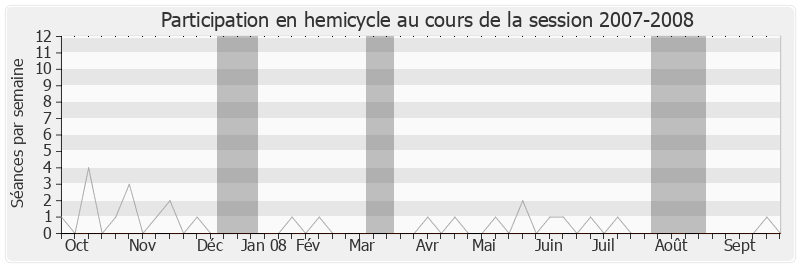 Présences enregistrées     Participations     Mots prononcés (x 10 000)     Vacances parlementaires   Présence médiane