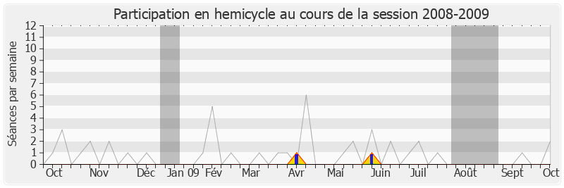 Présences enregistrées     Participations     Mots prononcés (x 10 000)     Vacances parlementaires   Présence médiane