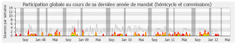 Présences relevées Participations Mots prononcés (x 10 000) Vacances parlementaires — Présence médiane Explications
