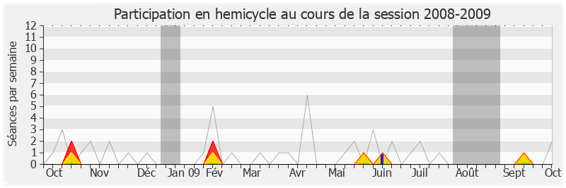 Présences enregistrées     Participations     Mots prononcés (x 10 000)     Vacances parlementaires   Présence médiane