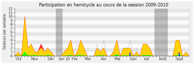 Présences enregistrées     Participations     Mots prononcés (x 10 000)     Vacances parlementaires   Présence médiane