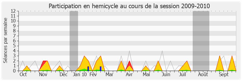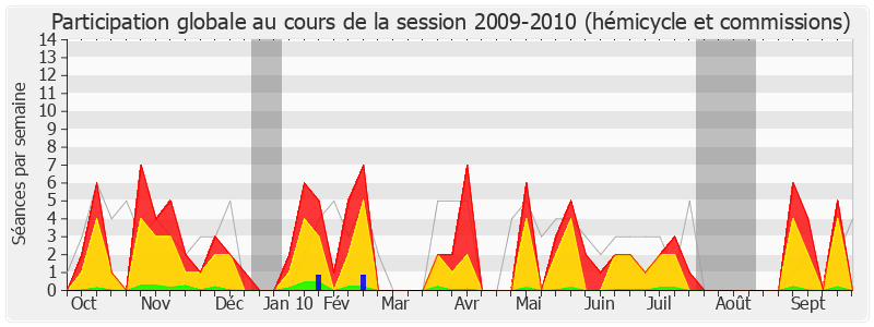 Présences enregistrées     Participations     Mots prononcés (x 10 000)     Vacances parlementaires   Présence médiane