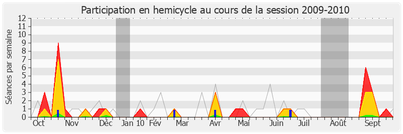 Présences enregistrées     Participations     Mots prononcés (x 10 000)     Vacances parlementaires   Présence médiane