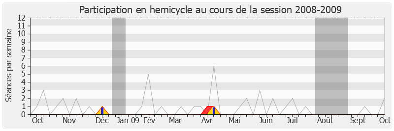 Présences enregistrées     Participations     Mots prononcés (x 10 000)     Vacances parlementaires   Présence médiane