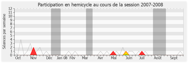 Présences enregistrées     Participations     Mots prononcés (x 10 000)     Vacances parlementaires   Présence médiane