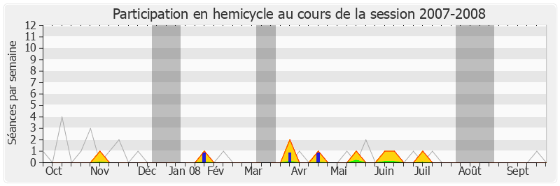 Présences enregistrées     Participations     Mots prononcés (x 10 000)     Vacances parlementaires   Présence médiane