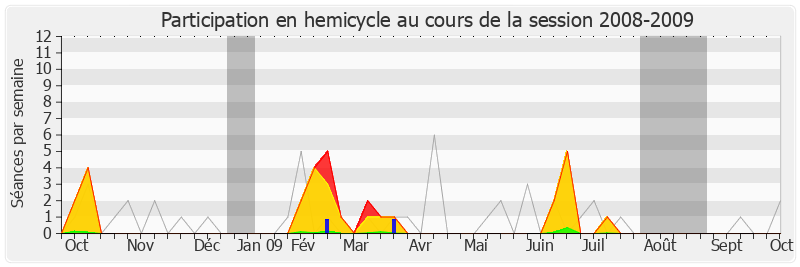 Présences enregistrées     Participations     Mots prononcés (x 10 000)     Vacances parlementaires   Présence médiane