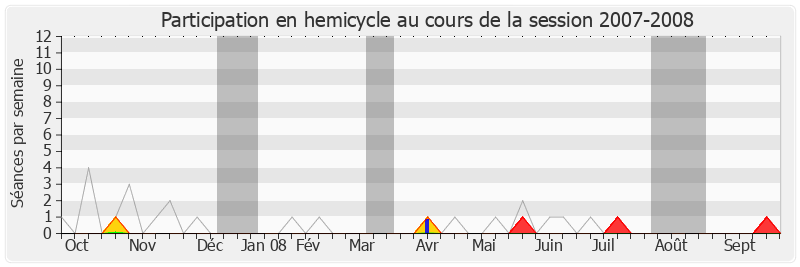 Présences enregistrées     Participations     Mots prononcés (x 10 000)     Vacances parlementaires   Présence médiane