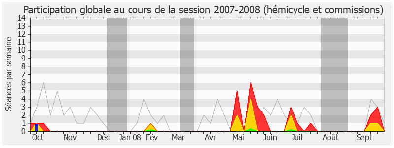 Présences enregistrées     Participations     Mots prononcés (x 10 000)     Vacances parlementaires   Présence médiane
